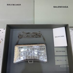 High-Grade Imitation Balenciaga Balenciaga Hourglass On Chain Silver in Silver crafted in premium leather. This replica mirrors the original’s proportions with polished metal hardware and durable fabric lining. Expect smooth zippers, neat glazing and solid hardware, giving a convincing imitation that balances durability and elegance. Color and finish remain faithful to Balenciaga codes, while interior space is tuned for daily use. It offers runway style at a smart, wallet-friendly cost, ideal for collectors seeking a Balenciaga replica bag that respects the design DNA. Sized for phone, wallet, keys and small tech.