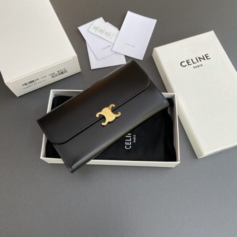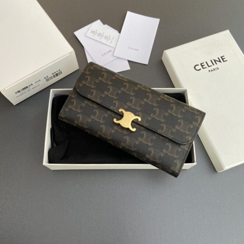 Premium Fake Celine Celine Triumphe Long Wallet crafted in premium leather. This replica mirrors the original’s proportions with polished metal hardware and durable fabric lining. Expect a structured silhouette with reinforced stress points, giving a convincing imitation that balances durability and elegance. Color and finish remain faithful to Celine codes, while interior space is tuned for daily use. It offers runway style at a smart, wallet-friendly cost, ideal for collectors seeking a Celine replica bag that respects the design DNA. Sized for phone, wallet, keys and small tech. Choose this super clone if you want premium build, iconic style and long-term reliability without overspending.