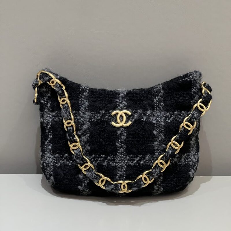 Replica CHANEL CHANEL 22k Woolen Hobo crafted in premium leather. This replica mirrors the original’s proportions with polished metal hardware and durable fabric lining. Expect careful construction calibrated to match the original, giving a convincing imitation that balances durability and elegance. Color and finish remain faithful to CHANEL codes, while interior space is tuned for daily use. It offers runway style at a smart, wallet-friendly cost, ideal for collectors seeking a CHANEL replica bag that respects the design DNA. Sized for phone, wallet, keys and small tech. Choose this super clone if you want premium build, iconic style and long-term reliability without overspending.