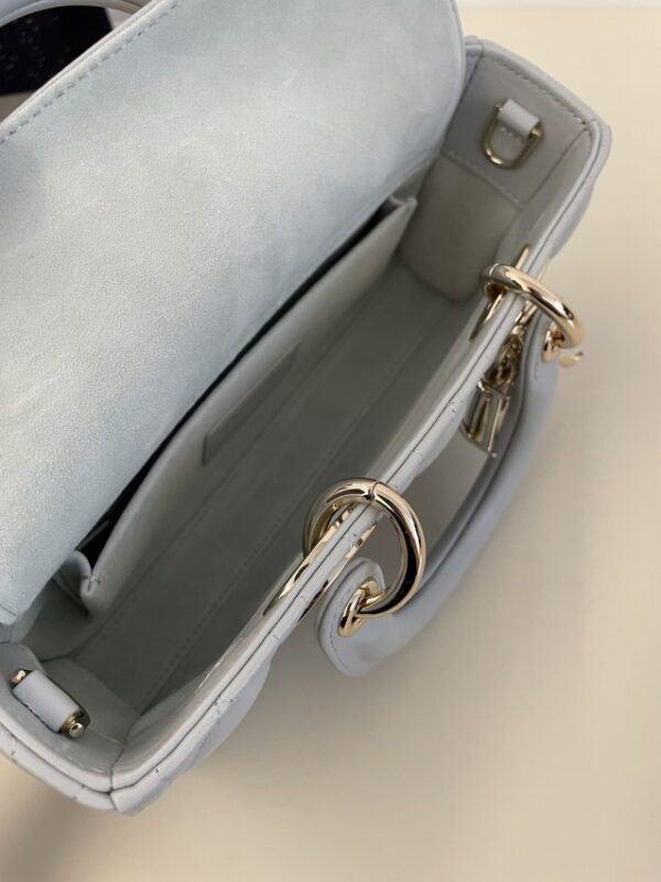 Replica Dior Lady D-Joy Bag Sky Blue in Sky Blue crafted in cannage lambskin. This replica mirrors the original’s proportions with DIOR letter charms and microfiber lining. Expect precise stitching, clean edges and well-aligned patterns, giving a convincing imitation that balances durability and elegance. Color and finish remain faithful to Dior codes, while interior space is tuned for daily use. It offers an affordable designer bag alternative with the same look and feel, ideal for collectors seeking a Dior replica bag that respects the design DNA. Easy for work, travel and city days. Choose this super clone if you want premium build, iconic style and long-term reliability without overspending.