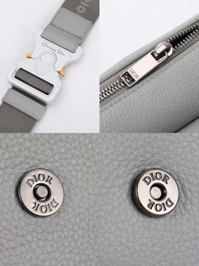 - Adjustable Christian Dior nylon jacquard shoulder strap with leather detailing and CD signature aluminum buckle