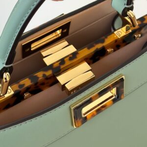 High-Grade Imitation Fendi Fendi Peekaboo Medium Light Green (Medium) in Green crafted in premium leather. This replica mirrors the original’s proportions with polished metal hardware and durable fabric lining. Expect careful construction calibrated to match the original, giving a convincing imitation that balances durability and elegance. Color and finish remain faithful to Fendi codes, while interior space is tuned for daily use. It offers luxury presence without the boutique price tag, ideal for collectors seeking a Fendi replica bag that respects the design DNA. Easy for work, travel and city days.