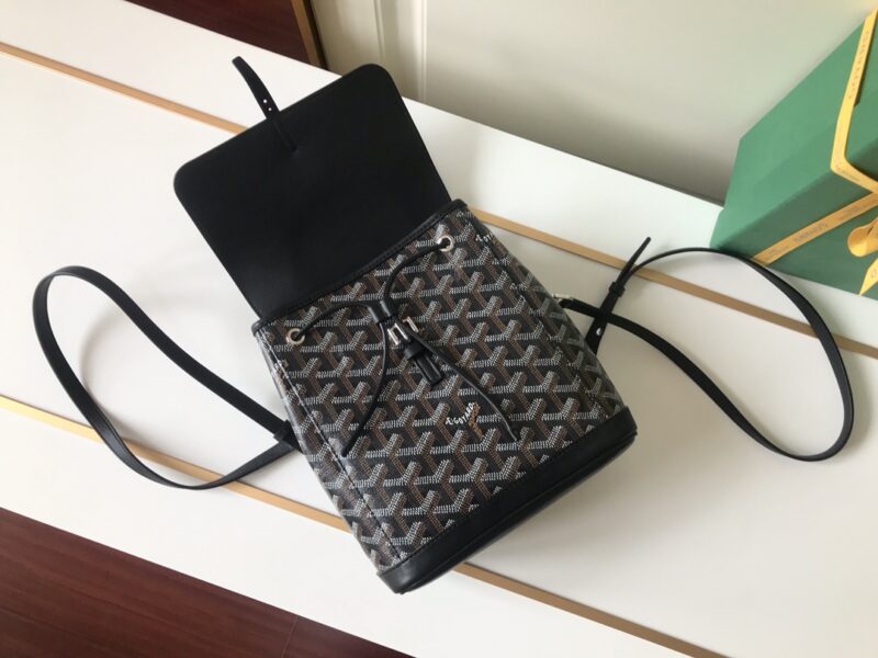 Replica Goyard Goyard Alpi Mini Backpack Black (Mini) in Black crafted in premium leather. This replica mirrors the original’s proportions with polished metal hardware and durable fabric lining. Expect careful construction calibrated to match the original, giving a convincing imitation that balances durability and elegance. Color and finish remain faithful to Goyard codes, while interior space is tuned for daily use. It offers an affordable designer bag alternative with the same look and feel, ideal for collectors seeking a Goyard replica bag that respects the design DNA. Sized for phone, wallet, keys and small tech.