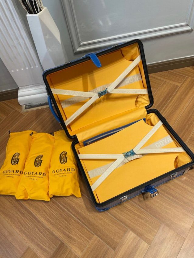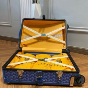 Replica Goyard Goyard Bourget Travel Suitcase Blue in Blue crafted in premium leather. This replica mirrors the original’s proportions with polished metal hardware and durable fabric lining. Expect careful construction calibrated to match the original, giving a convincing imitation that balances durability and elegance. Color and finish remain faithful to Goyard codes, while interior space is tuned for daily use. It offers luxury presence without the boutique price tag, ideal for collectors seeking a Goyard replica bag that respects the design DNA. Built for everyday carry and special occasions alike.