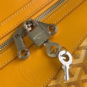 Top 1:1 Replica Goyard Goyard Bowling 55 Bag Yellow in Yellow crafted in premium leather. This replica mirrors the original’s proportions with polished metal hardware and durable fabric lining. Expect careful construction calibrated to match the original, giving a convincing imitation that balances durability and elegance. Color and finish remain faithful to Goyard codes, while interior space is tuned for daily use. It offers runway style at a smart, wallet-friendly cost, ideal for collectors seeking a Goyard replica bag that respects the design DNA. Built for everyday carry and special occasions alike.