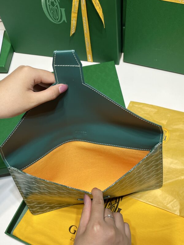 Replica Goyard Goyard Camond Pouch Green in Green crafted in premium leather. This replica mirrors the original’s proportions with polished metal hardware and durable fabric lining. Expect smooth zippers, neat glazing and solid hardware, giving a convincing imitation that balances durability and elegance. Color and finish remain faithful to Goyard codes, while interior space is tuned for daily use. It offers luxury presence without the boutique price tag, ideal for collectors seeking a Goyard replica bag that respects the design DNA. Sized for phone, wallet, keys and small tech. Choose this super clone if you want premium build, iconic style and long-term reliability without overspending.