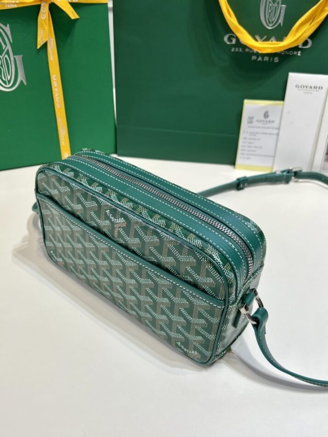 Top 1:1 Replica Goyard Goyard Cap Vert Red Green in Green crafted in premium leather. This replica mirrors the original’s proportions with polished metal hardware and durable fabric lining. Expect smooth zippers, neat glazing and solid hardware, giving a convincing imitation that balances durability and elegance. Color and finish remain faithful to Goyard codes, while interior space is tuned for daily use. It offers an affordable designer bag alternative with the same look and feel, ideal for collectors seeking a Goyard replica bag that respects the design DNA. Built for everyday carry and special occasions alike.
