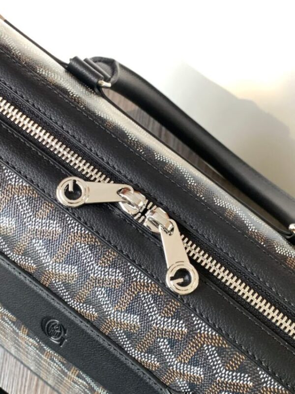 Premium Fake Goyard Goyard Cisalpin Document Case Black in Black crafted in premium leather. This replica mirrors the original’s proportions with polished metal hardware and durable fabric lining. Expect a structured silhouette with reinforced stress points, giving a convincing imitation that balances durability and elegance. Color and finish remain faithful to Goyard codes, while interior space is tuned for daily use. It offers the prestige you want at an accessible price, ideal for collectors seeking a Goyard replica bag that respects the design DNA. Easy for work, travel and city days. Choose this super clone if you want premium build, iconic style and long-term reliability without overspending.