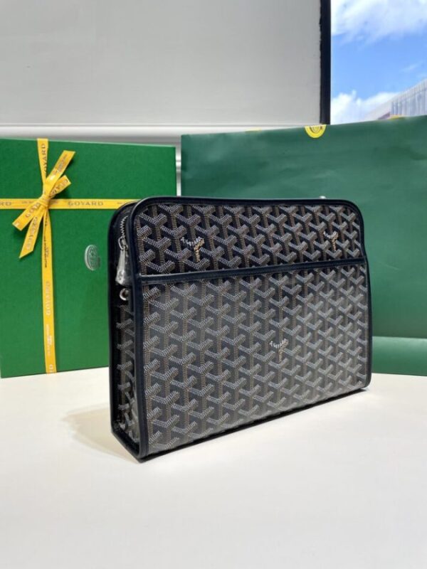 High-Grade Imitation Goyard Goyard Jouvence Toiletry Bag Black in Black crafted in premium leather. This replica mirrors the original’s proportions with polished metal hardware and durable fabric lining. Expect smooth zippers, neat glazing and solid hardware, giving a convincing imitation that balances durability and elegance. Color and finish remain faithful to Goyard codes, while interior space is tuned for daily use. It offers the prestige you want at an accessible price, ideal for collectors seeking a Goyard replica bag that respects the design DNA. Easy for work, travel and city days. Choose this super clone if you want premium build, iconic style and long-term reliability without overspending.