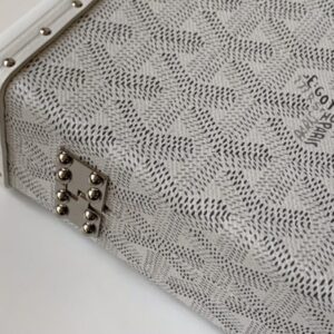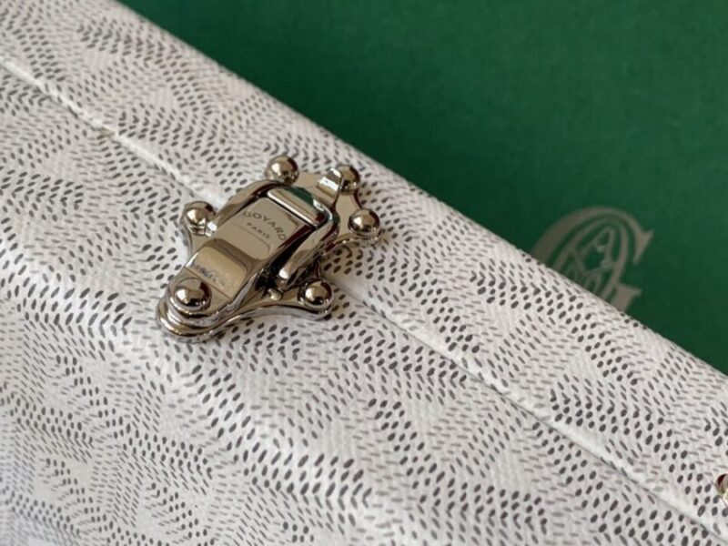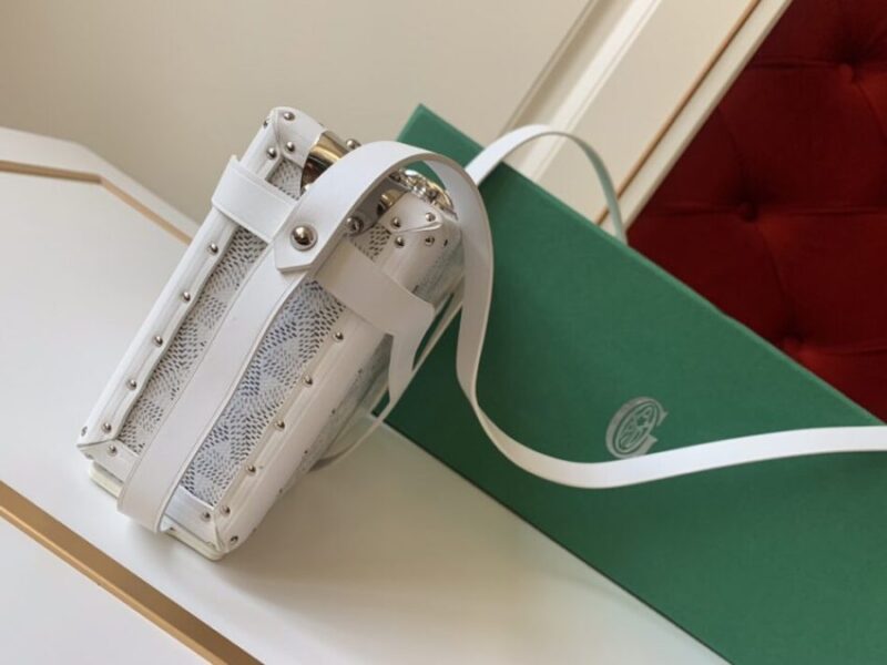 High-Grade Imitation Goyard Goyard Minaudière Trunk Bag White in White crafted in premium leather. This replica mirrors the original’s proportions with polished metal hardware and durable fabric lining. Expect smooth zippers, neat glazing and solid hardware, giving a convincing imitation that balances durability and elegance. Color and finish remain faithful to Goyard codes, while interior space is tuned for daily use. It offers runway style at a smart, wallet-friendly cost, ideal for collectors seeking a Goyard replica bag that respects the design DNA. Pairs effortlessly with casual or dressed-up looks.