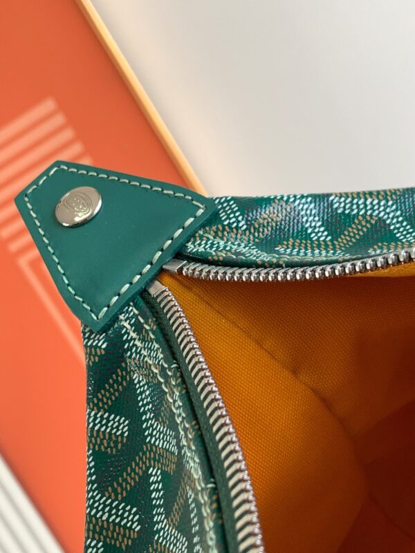 Premium Fake Goyard Goyard Toiletry Bag Green in Green crafted in premium leather. This replica mirrors the original’s proportions with polished metal hardware and durable fabric lining. Expect careful construction calibrated to match the original, giving a convincing imitation that balances durability and elegance. Color and finish remain faithful to Goyard codes, while interior space is tuned for daily use. It offers runway style at a smart, wallet-friendly cost, ideal for collectors seeking a Goyard replica bag that respects the design DNA. Built for everyday carry and special occasions alike.