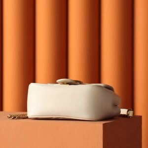 High-Grade Imitation Gucci GG Marmont Square Beige in Beige crafted in matelasse leather. This replica mirrors the original’s proportions with antique gold GG hardware and microfiber lining. Expect precise stitching, clean edges and well-aligned patterns, giving a convincing imitation that balances durability and elegance. Color and finish remain faithful to Gucci codes, while interior space is tuned for daily use. It offers the prestige you want at an accessible price, ideal for collectors seeking a Gucci replica bag that respects the design DNA. Pairs effortlessly with casual or dressed-up looks.