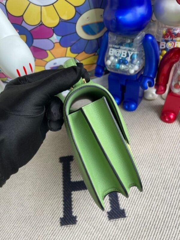 Premium Fake Hermes Constance 18cm Light Green (18cm) in Green crafted in premium leather. This replica mirrors the original’s proportions with polished metal hardware and durable fabric lining. Expect a structured silhouette with reinforced stress points, giving a convincing imitation that balances durability and elegance. Color and finish remain faithful to Hermes codes, while interior space is tuned for daily use. It offers runway style at a smart, wallet-friendly cost, ideal for collectors seeking a Hermes replica bag that respects the design DNA. Pairs effortlessly with casual or dressed-up looks.