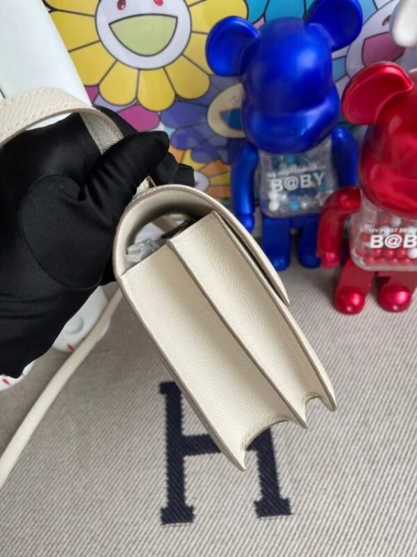 Replica Hermes Constance 18cm White (18cm) in White crafted in premium leather. This replica mirrors the original’s proportions with polished metal hardware and durable fabric lining. Expect careful construction calibrated to match the original, giving a convincing imitation that balances durability and elegance. Color and finish remain faithful to Hermes codes, while interior space is tuned for daily use. It offers runway style at a smart, wallet-friendly cost, ideal for collectors seeking a Hermes replica bag that respects the design DNA. Easy for work, travel and city days. Choose this super clone if you want premium build, iconic style and long-term reliability without overspending.