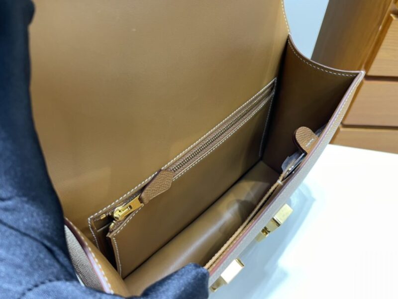 High-Grade Imitation Hermes Constance 24cm Golden Brown (24cm) in Golden crafted in premium leather. This replica mirrors the original’s proportions with polished metal hardware and durable fabric lining. Expect a structured silhouette with reinforced stress points, giving a convincing imitation that balances durability and elegance. Color and finish remain faithful to Hermes codes, while interior space is tuned for daily use. It offers runway style at a smart, wallet-friendly cost, ideal for collectors seeking a Hermes replica bag that respects the design DNA. Sized for phone, wallet, keys and small tech.