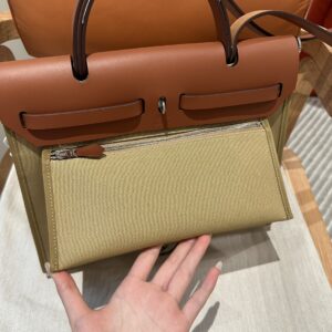 Top 1:1 Replica Hermes Herbag 31cm Brown Canvas (31cm) in Brown crafted in premium leather. This replica mirrors the original’s proportions with polished metal hardware and durable fabric lining. Expect precise stitching, clean edges and well-aligned patterns, giving a convincing imitation that balances durability and elegance. Color and finish remain faithful to Hermes codes, while interior space is tuned for daily use. It offers luxury presence without the boutique price tag, ideal for collectors seeking a Hermes replica bag that respects the design DNA. Easy for work, travel and city days. Choose this super clone if you want premium build, iconic style and long-term reliability without overspending.