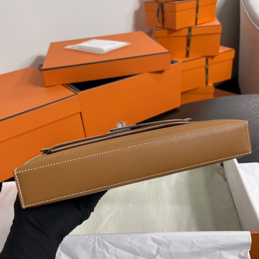 Top 1:1 Replica Hermes Kelly Elan Brown Silver in Silver crafted in Epsom or Togo leather. This replica mirrors the original’s proportions with palladium or gold-plated hardware and chevre leather lining. Expect smooth zippers, neat glazing and solid hardware, giving a convincing imitation that balances durability and elegance. Color and finish remain faithful to Hermes codes, while interior space is tuned for daily use. It offers luxury presence without the boutique price tag, ideal for collectors seeking a Hermes replica bag that respects the design DNA. Sized for phone, wallet, keys and small tech.