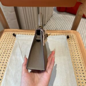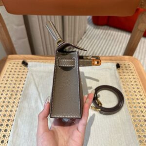 High-Grade Imitation Hermes Kelly Etoupe crafted in Epsom or Togo leather. This replica mirrors the original’s proportions with palladium or gold-plated hardware and chevre leather lining. Expect precise stitching, clean edges and well-aligned patterns, giving a convincing imitation that balances durability and elegance. Color and finish remain faithful to Hermes codes, while interior space is tuned for daily use. It offers runway style at a smart, wallet-friendly cost, ideal for collectors seeking a Hermes replica bag that respects the design DNA. Easy for work, travel and city days. Choose this super clone if you want premium build, iconic style and long-term reliability without overspending.