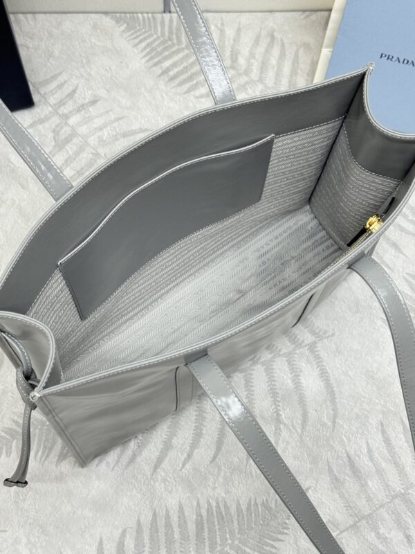 1:1 Quality Replica Prada Prada Antique Nappa Tote Grey in Grey crafted in premium leather. This replica mirrors the original’s proportions with polished metal hardware and durable fabric lining. Expect a structured silhouette with reinforced stress points, giving a convincing imitation that balances durability and elegance. Color and finish remain faithful to Prada codes, while interior space is tuned for daily use. It offers the prestige you want at an accessible price, ideal for collectors seeking a Prada replica bag that respects the design DNA. Easy for work, travel and city days. Choose this super clone if you want premium build, iconic style and long-term reliability without overspending.