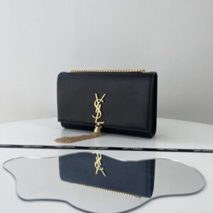 Premium Fake YSL YSL Kate Tassel Black in Black crafted in premium leather. This replica mirrors the original’s proportions with polished metal hardware and durable fabric lining. Expect precise stitching, clean edges and well-aligned patterns, giving a convincing imitation that balances durability and elegance. Color and finish remain faithful to YSL codes, while interior space is tuned for daily use. It offers the prestige you want at an accessible price, ideal for collectors seeking a YSL replica bag that respects the design DNA. Sized for phone, wallet, keys and small tech. Choose this super clone if you want premium build, iconic style and long-term reliability without overspending.