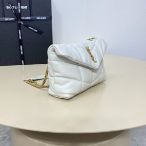 Replica YSL YSL Loulou White Puffer in White crafted in premium leather. This replica mirrors the original’s proportions with polished metal hardware and durable fabric lining. Expect careful construction calibrated to match the original, giving a convincing imitation that balances durability and elegance. Color and finish remain faithful to YSL codes, while interior space is tuned for daily use. It offers luxury presence without the boutique price tag, ideal for collectors seeking a YSL replica bag that respects the design DNA. Pairs effortlessly with casual or dressed-up looks. Choose this super clone if you want premium build, iconic style and long-term reliability without overspending.